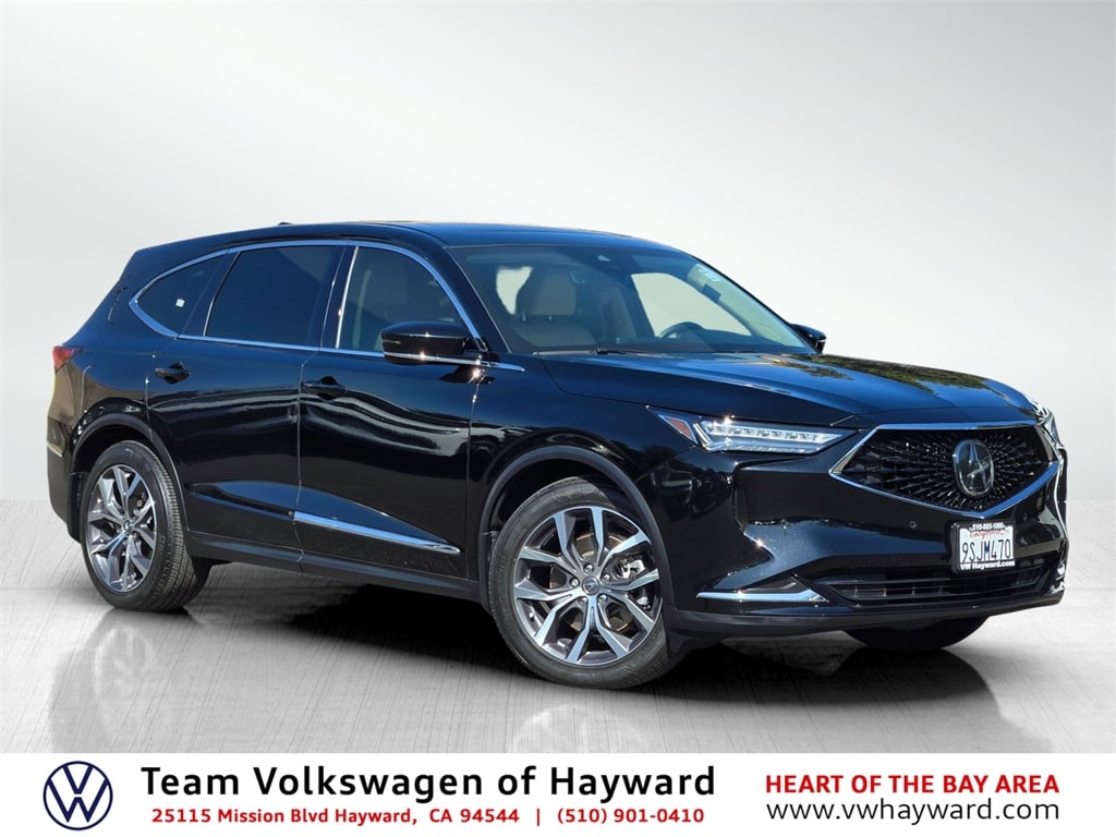 Majestic Black Pearl 2023 Acura MDX Technology 4D Sport Utility FWD 3.5L V6 SOHC i-VTEC 24V 10-Speed Automatic Parchment w/Perforated Premium Milano Leather Trimmed Seats, 12 Speakers, 3rd row seats: split-bench, Audio memory, Auto High-beam Headlights, Automatic temperature control, Brake assist, Bumpers: body-color, Dual front impact airbags, Emergency communication system: AcuraLink, Front Center Armrest, Fully automatic headlights, Heated door mirrors, Heated Front Sport Seats, HVAC memory, Illuminated entry, Knee airbag, Low tire pressure warning, Memory seat, Navigation system: Acura Navigation System with 3D View, Occupant sensing airbag, Outside temperature display, Overhead console, Power moonroof, Power steering, Premium audio system: Acura/ELS Surround, Radio: ELS Studio Premium Audio System, Rain sensing wipers, Rear anti-roll bar, Rear reading lights, Rear window defroster, Security system, Speed-Sensitive Wipers, Telescoping steering wheel, Tilt steering wheel, Wheels: 20" x 9" Aluminum Alloy. Odometer is 572 miles below market average!
