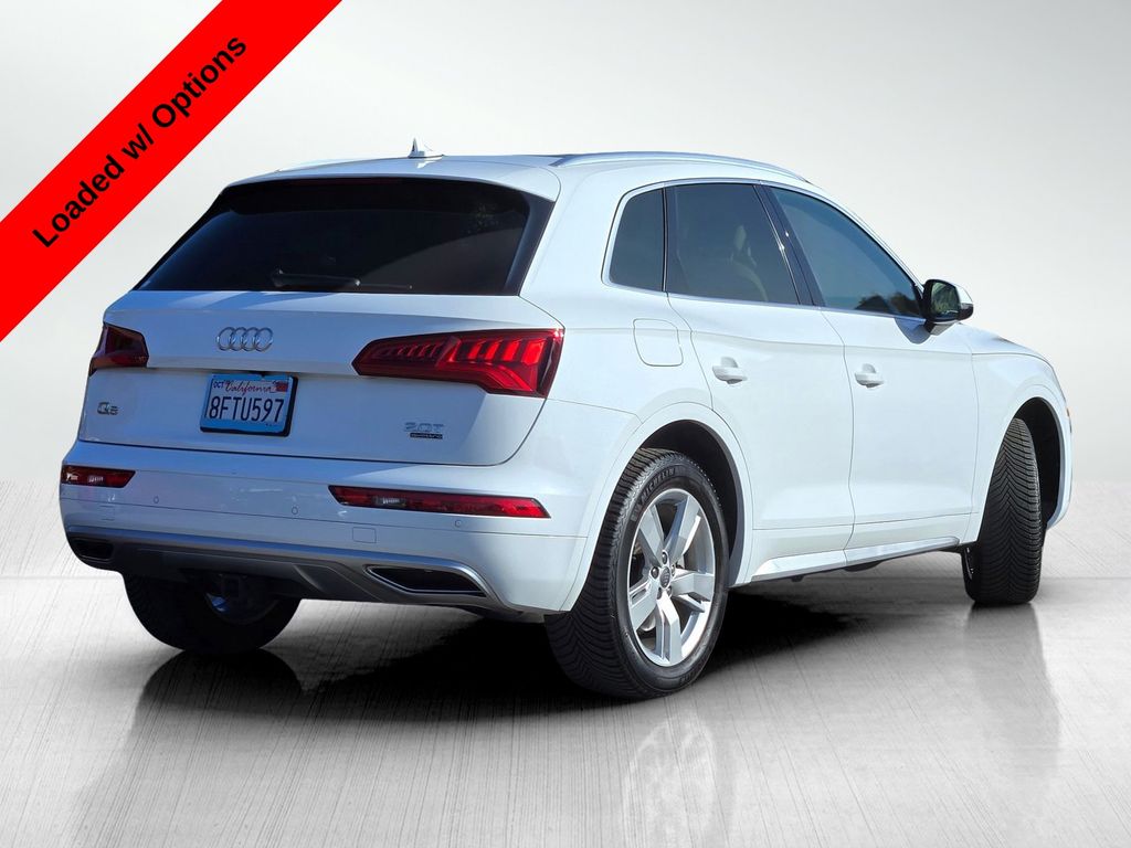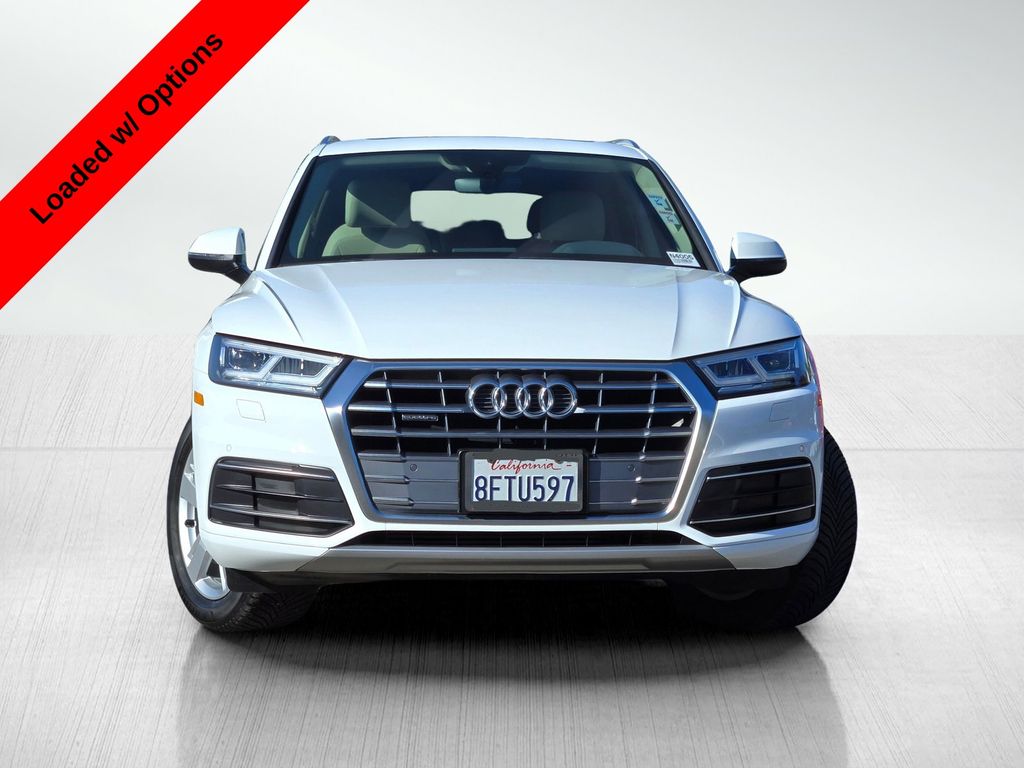 Ibis White 2018 Audi Q5 2.0T Premium quattro quattro 7-Speed Automatic S tronic 2.0L TFSI Atlas Beige w/Leather Seating Surfaces, 10 Speakers, 4-Wheel Disc Brakes, 8-Way Power Front Bucket Seats, ABS brakes, Air Conditioning, AM/FM radio, Audi smartphone interface (Apple CarPlay/Android Auto), Auto-dimming Rear-View mirror, Automatic temperature control, Bumpers: body-color, Compass, Delay-off headlights, Driver door bin, Driver vanity mirror, Dual front impact airbags, Dual front side impact airbags, Electronic Stability Control, Front Center Armrest, Front dual zone A/C, Genuine wood door panel insert, Heated door mirrors, High intensity discharge headlights: Xenon plus, Illuminated entry, Leather Shift Knob, Leather steering wheel, Low tire pressure warning, Outside temperature display, Overhead airbag, Overhead console, Panoramic Sunroof w/Tilt/Slide & Power Sunshade, Passenger door bin, Passenger vanity mirror, Power door mirrors, Power driver seat, Power Liftgate, Power passenger seat, Power windows, Radio data system, Radio: Audi Sound System w/7" TFT Color Display, Radio: MMI Navigation Plus System, Rain sensing wipers, Rear air conditioning, Rear reading lights, Rear seat center armrest, Rear window wiper, Remote keyless entry, Roof rack, Speed-Sensitive Wipers, Split folding rear seat, Steering wheel mounted audio controls, Tachometer, Tilt steering wheel, Trip computer, Turn signal indicator mirrors.