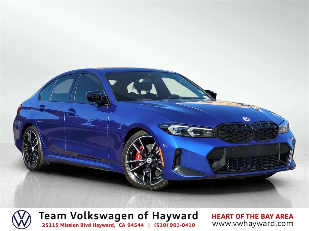 Portimao Blue Metallic 2023 BMW 3 Series M340i 4D Sedan RWD 3.0L I6 8-Speed Automatic Sport 10 Speakers, 4-Wheel Disc Brakes, Active Blind Spot Detection, Active Driving Assistant, Air Conditioning, AM/FM radio: SiriusXM, Auto-dimming Rear-View mirror, BMW Assist eCall, BMW Curved Display w/HUD, Compass, Connected Package Pro, Driver door bin, Driver Lumbar Support, Driver vanity mirror, Driving Assistance Package, Dual front impact airbags, Emergency communication system: BMW Assist eCall, Enhanced USB & Bluetooth Plus Smartphone Integration, Extended Shadowline Trim, Exterior Parking Camera Rear, Front anti-roll bar, Front Bucket Seats, Front dual zone A/C, Fully automatic headlights, Garage door transmitter, Heated Front Seats, Heated Steering Wheel, Hi-Fi Sound System, Increased Top Speed Limiter, Lane Departure Warning System, LED Lights w/Cornering Lights, M Shadowline Lights, M Sport Brakes w/Red Calipers, M Sport Package Pro, Memory seat, Navigation System, Park Distance Control, Passenger vanity mirror, Power driver seat, Power windows, Premium Package, Radio data system, Rain sensing wipers, Rear anti-roll bar, Rear reading lights, Rear seat center armrest, Rear window defroster, Security system, Shadowline Package, Steering wheel mounted audio controls, Tachometer, Tilt steering wheel, Traction control, Wheels: 19" x 8" Fr & 19" x 8.5" Rr (Style 792M), Widescreen Display.