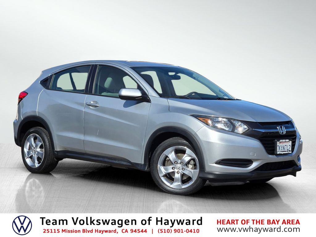 Alabaster Silver Metallic 2016 Honda HR-V LX 4D Sport Utility FWD 1.8L I4 SOHC 16V i-VTEC CVT 4 Speakers, 4-Wheel Disc Brakes, 5.436 Axle Ratio, Air Conditioning, Alloy wheels, AM/FM radio, Brake assist, Bumpers: body-color, CD player, Cloth Seat Trim, Driver vanity mirror, Dual front side impact airbags, Electronic Stability Control, Exterior Parking Camera Rear, Front Bucket Seats, Front reading lights, Low tire pressure warning, Outside temperature display, Overhead airbag, Panic alarm, Passenger vanity mirror, Power steering, Radio: AM/FM/CD Audio System (160 Watts), Remote keyless entry, Security system, Split folding rear seat, Spoiler, Steering wheel mounted audio controls, Telescoping steering wheel, Traction control, Trip computer. Odometer is 22431 miles below market average!