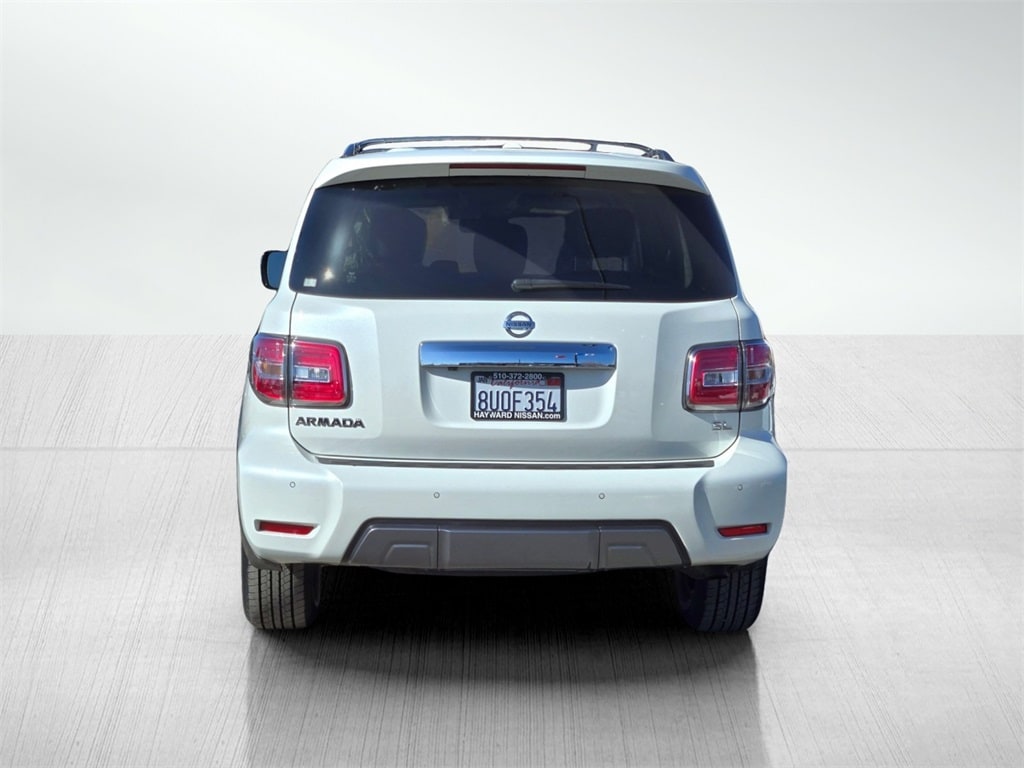 Pearl White Tricoat 2020 Nissan Armada SL RWD 7-Speed Automatic 5.6L V8 13 Speakers, 3rd row seats: split-bench, 4-Wheel Disc Brakes, Air Conditioning, AM/FM radio: SiriusXM, Auto-dimming door mirrors, Axle Ratio: 2.94, Blind Spot Warning, Bumpers: body-color, Cargo Package, Cross Bars, Delay-off headlights, Driver door bin, Emergency communication system: NissanConnect Services, Exterior Parking Camera Rear, Front Center Armrest, Front dual zone A/C, Garage door transmitter: HomeLink, Illuminated entry, Intelligent Back-Up Intervention (I-BI), Intelligent Distance Control (I-DC), Leather-Appointed Seat Trim, Low tire pressure warning, Navigation System, Overhead airbag, Passenger door bin, Power door mirrors, Power Liftgate, Power Sliding Moonroof w/Front Tilt & Rear Slide, Premium Package, Radio data system, Radio: AM/FM/SXM/CD/MP3/HD, Rain sensing wipers, Rear Cross Traffic Alert (RCTA), Rear window defroster, Reclining 3rd row seat, Security system, Split folding rear seat, Traction control, Turn signal indicator mirrors.