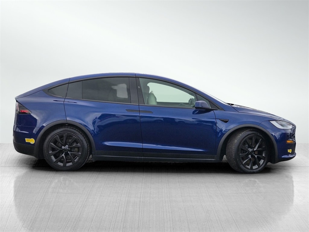 Deep Blue Metallic 2022 Tesla Model X AWD 1-Speed Automatic Electric Motor 6 Seat Interior, Air Conditioning, Audio memory, Auto High-beam Headlights, Auto tilt-away steering wheel, Driver door bin, Dual front side impact airbags, Exterior Parking Camera Rear, Four wheel independent suspension, Front Center Armrest, Fully automatic headlights, Garage door transmitter: Homelink, Genuine wood console insert, Heated door mirrors, Heated rear seats, Heated steering wheel, Illuminated entry, Knee airbag, Memory seat, Navigation System, Occupant sensing airbag, Passenger vanity mirror, Power driver seat, Power windows, Premium Seat Trim, Rear air conditioning, Rear audio controls, Rear side impact airbag, Rear window defroster, Remote keyless entry, Speed-Sensitive Wipers, Spoiler, Steering wheel mounted A/C controls, Traction control, Variably intermittent wipers, Wheels: 20" Cyberstream.