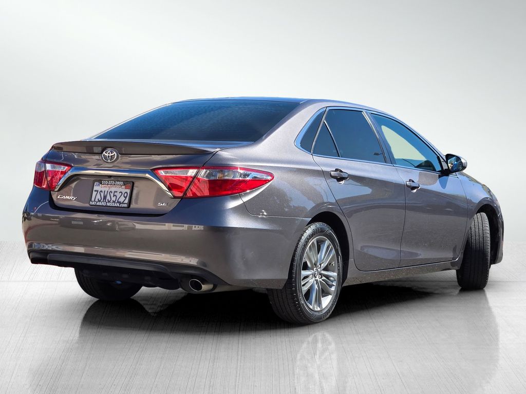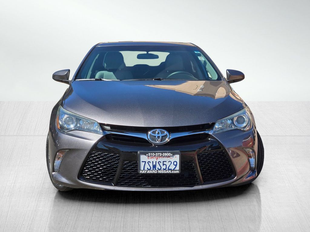 Predawn Gray Mica 2016 Toyota Camry SE FWD 6-Speed Automatic 2.5L I4 SMPI DOHC Ash w/Fabric Seat Trim, 4-Wheel Disc Brakes, 6 Speakers, AM/FM radio, Bumpers: body-color, Delay-off headlights, Driver door bin, Driver vanity mirror, Dual front impact airbags, Electronic Stability Control, Front anti-roll bar, Front Bucket Seats, Front reading lights, Heated door mirrors, Leather steering wheel, Low tire pressure warning, Moonroof Package, Occupant sensing airbag, Panic alarm, Power door mirrors, Power windows, Radio: Entune Audio, Radio: Entune Audio Plus, Rear seat center armrest, Rear window defroster, Speed control, Split folding rear seat, Sport steering wheel, Telescoping steering wheel, Tilt steering wheel, Variably intermittent wipers.